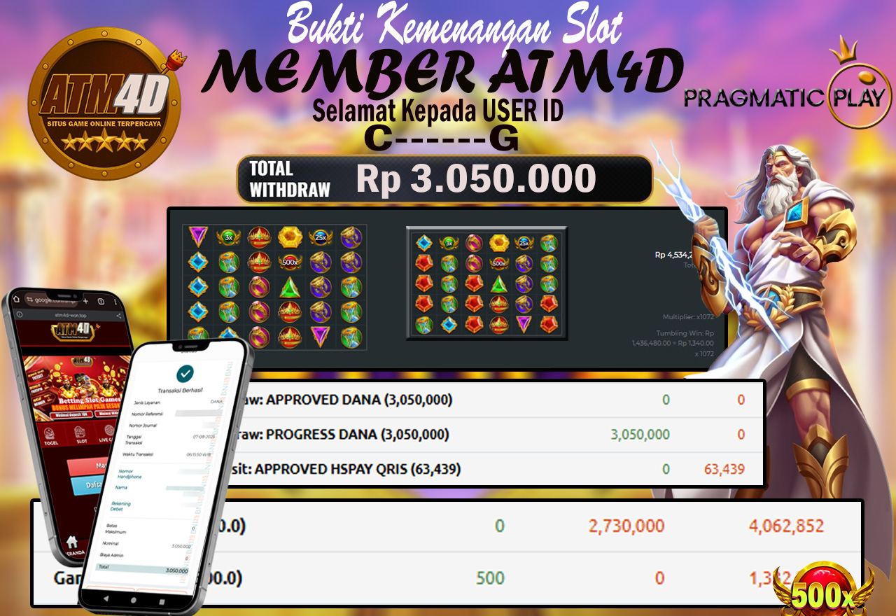 Selamat Kepada Member Yang Berhasil Mendapatkan Jackpot Dipermainan PRAGMATIC, Berikut Bukti Jackpot Member Di Situs ATM4D