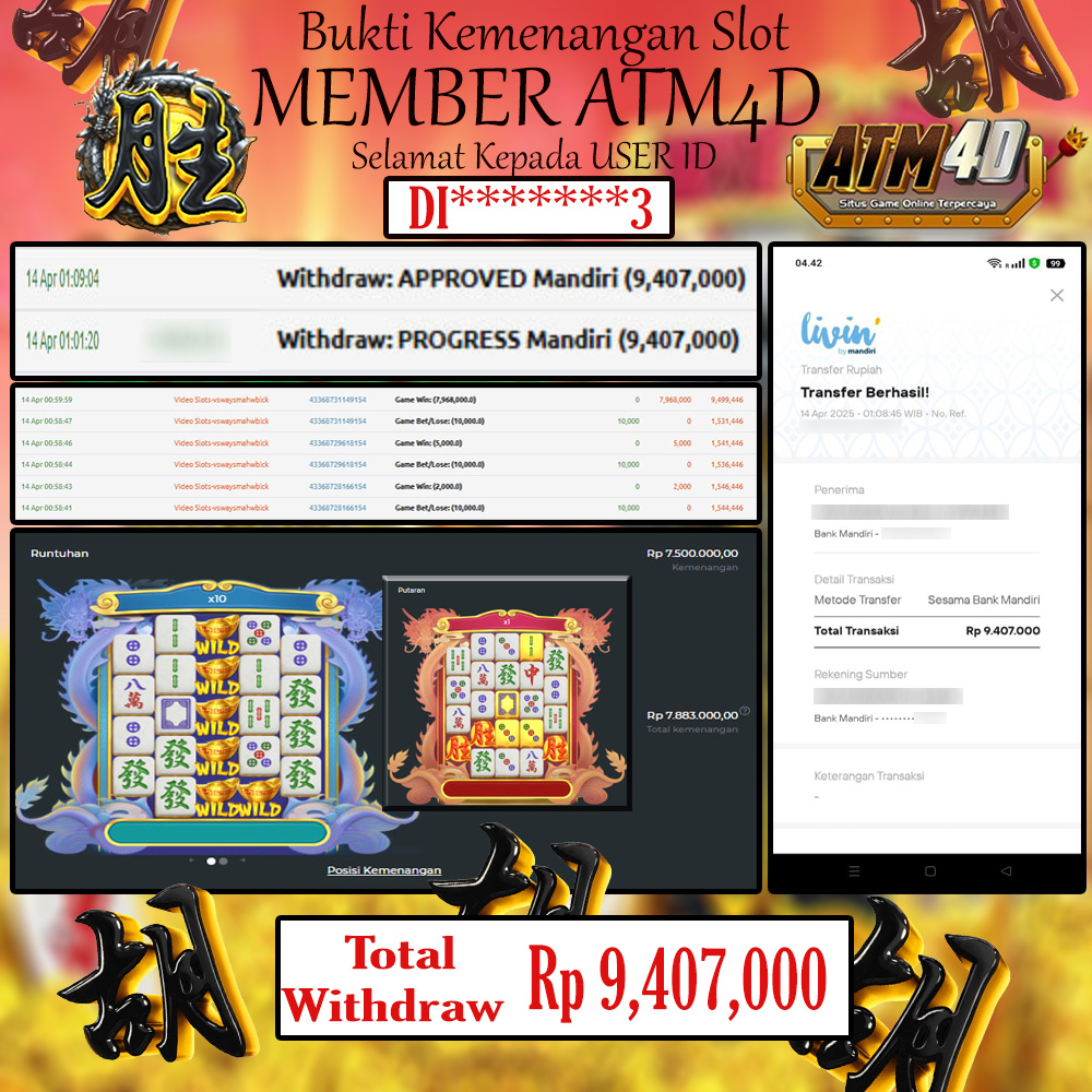 TOTAL KEMENANGAN : RP 9.407.000.-
