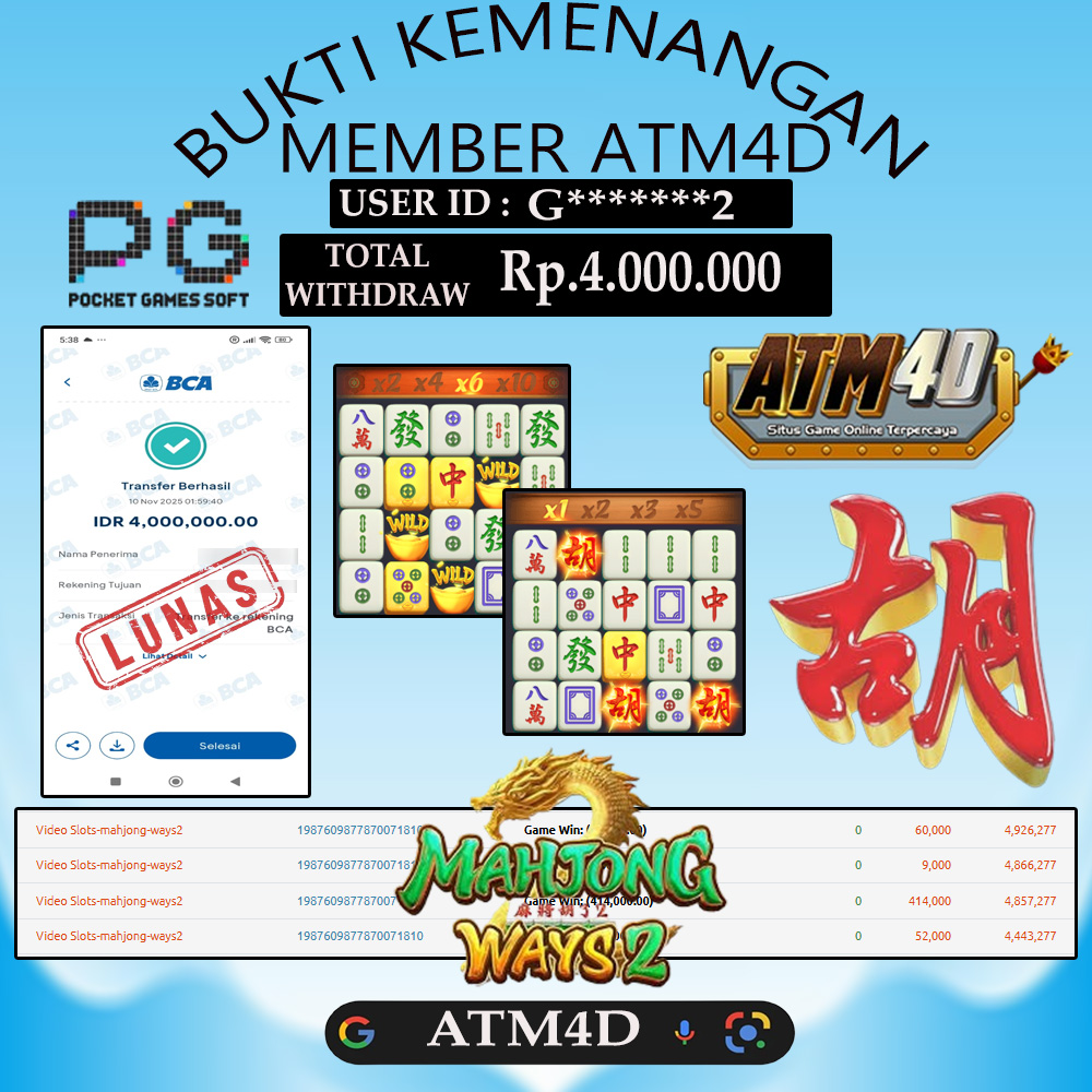 Selamat Kepada Member Yang Berhasil Mendapatkan Jackpot Dipermainan PG SOFT, Berikut Bukti Jackpot Member Di Situs ATM4D