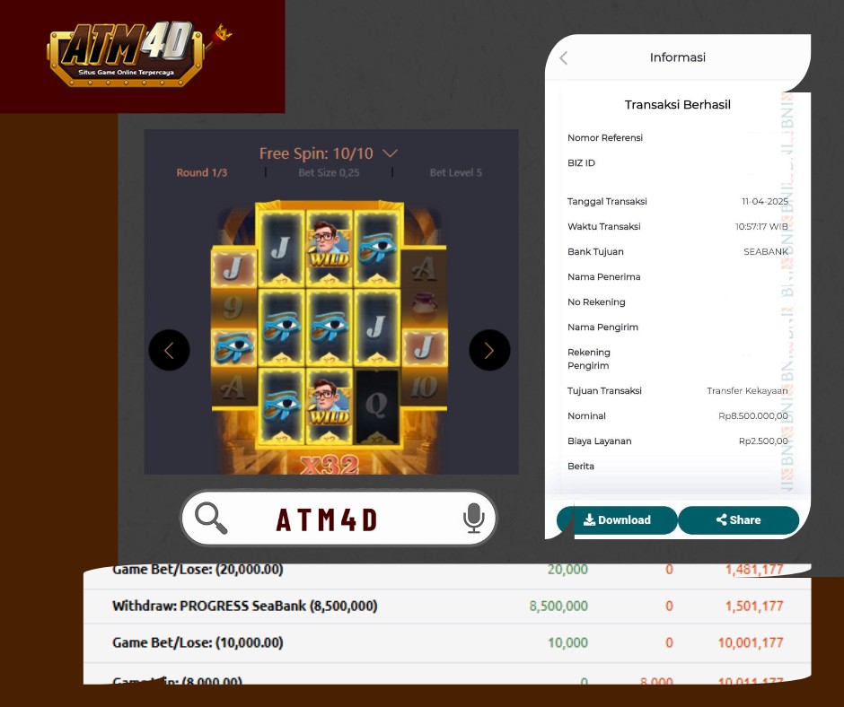 Jangan lewatkan kesempatan untuk meraih kemenangan besar. Daftar sekarang di ATM4D dan rasakan pengalaman bermain slot terbaik yang pernah ada! Putar gulungan, menangkan jackpot, dan jadilah bagian dari komunitas pemain sukses kami!