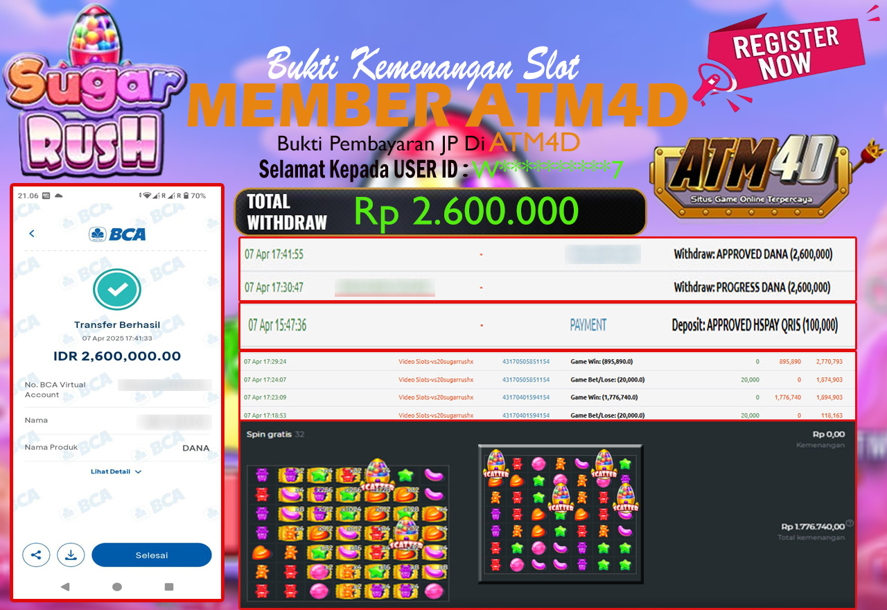 ATM4D – JACKPOT SLOT SUGAR RUSH 08 APRIL 2025, Bukti Kemenangan PRAGMATIC PLAY, Menang Platform online, Situs Aman Tergacor dan Aman, Withdraw Berapapun Pasti Di Bayar Langsung, Maxwin Slot Online.